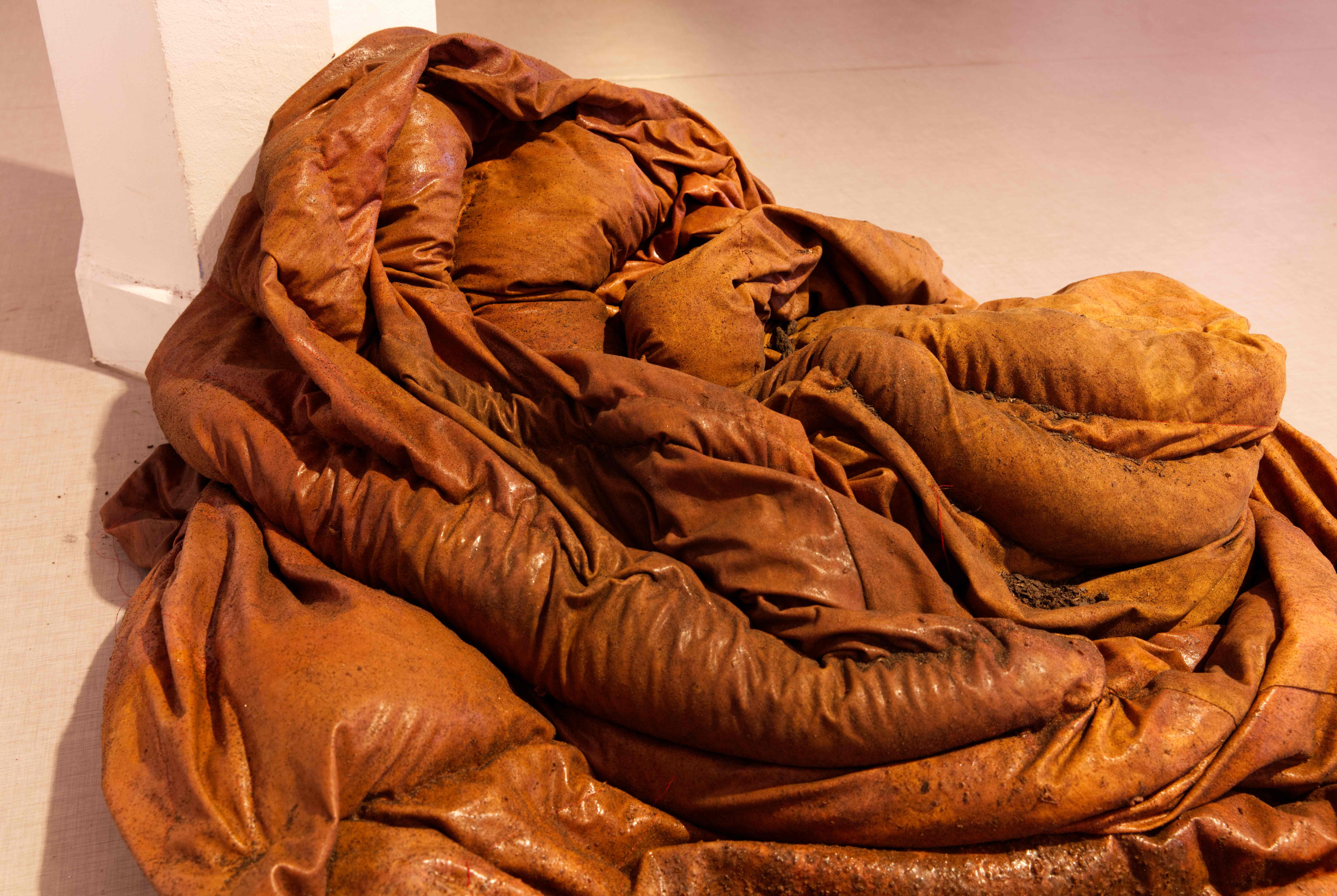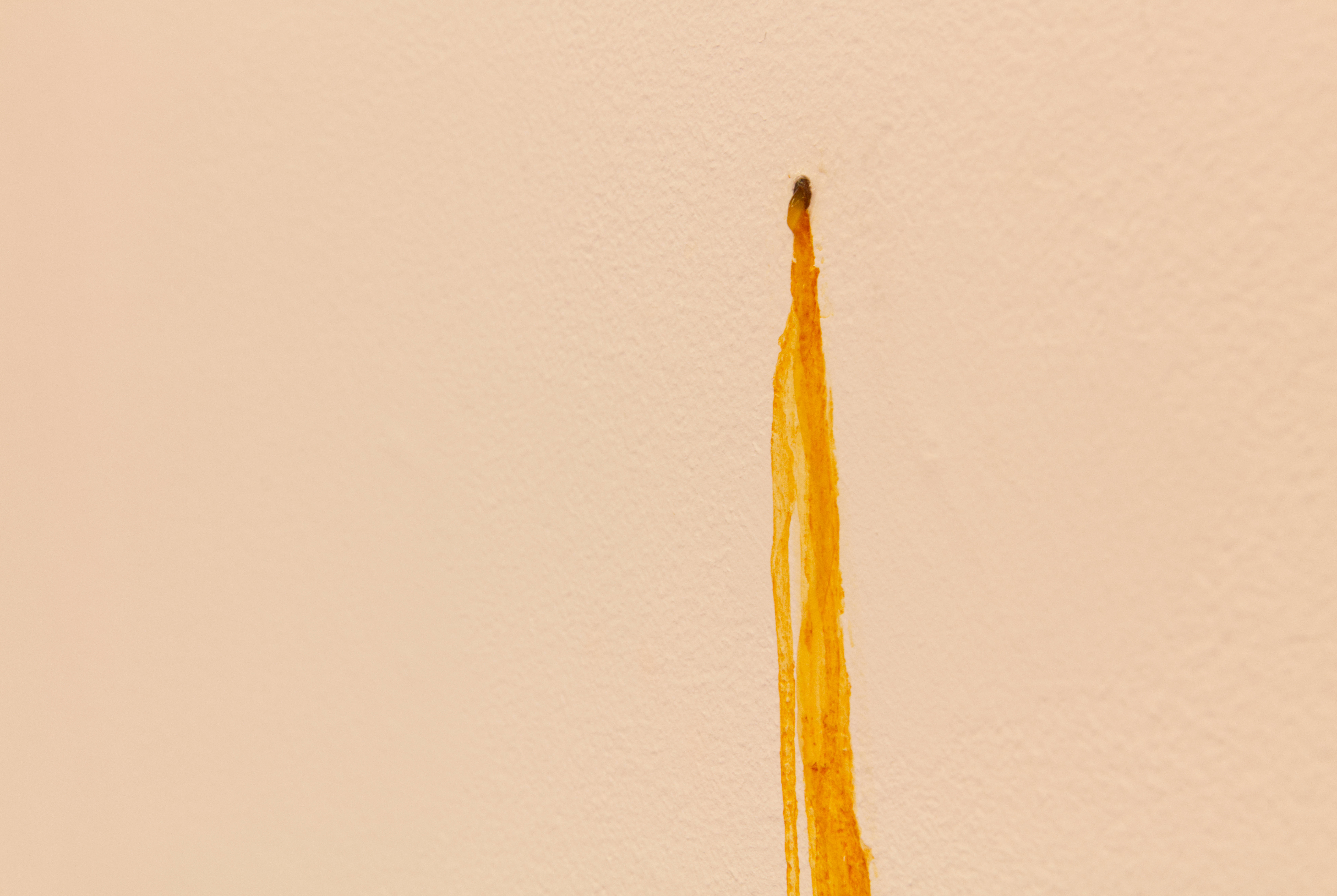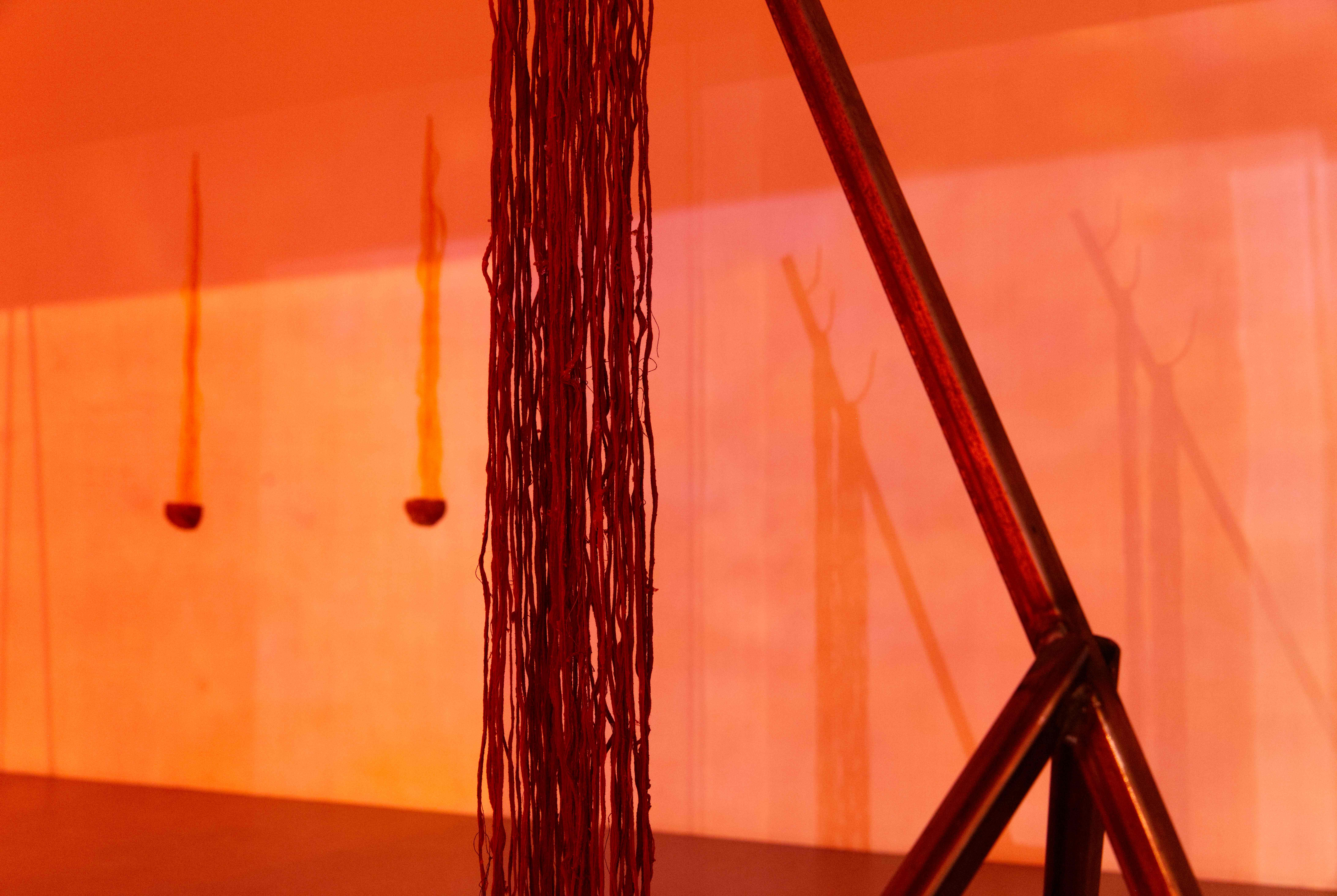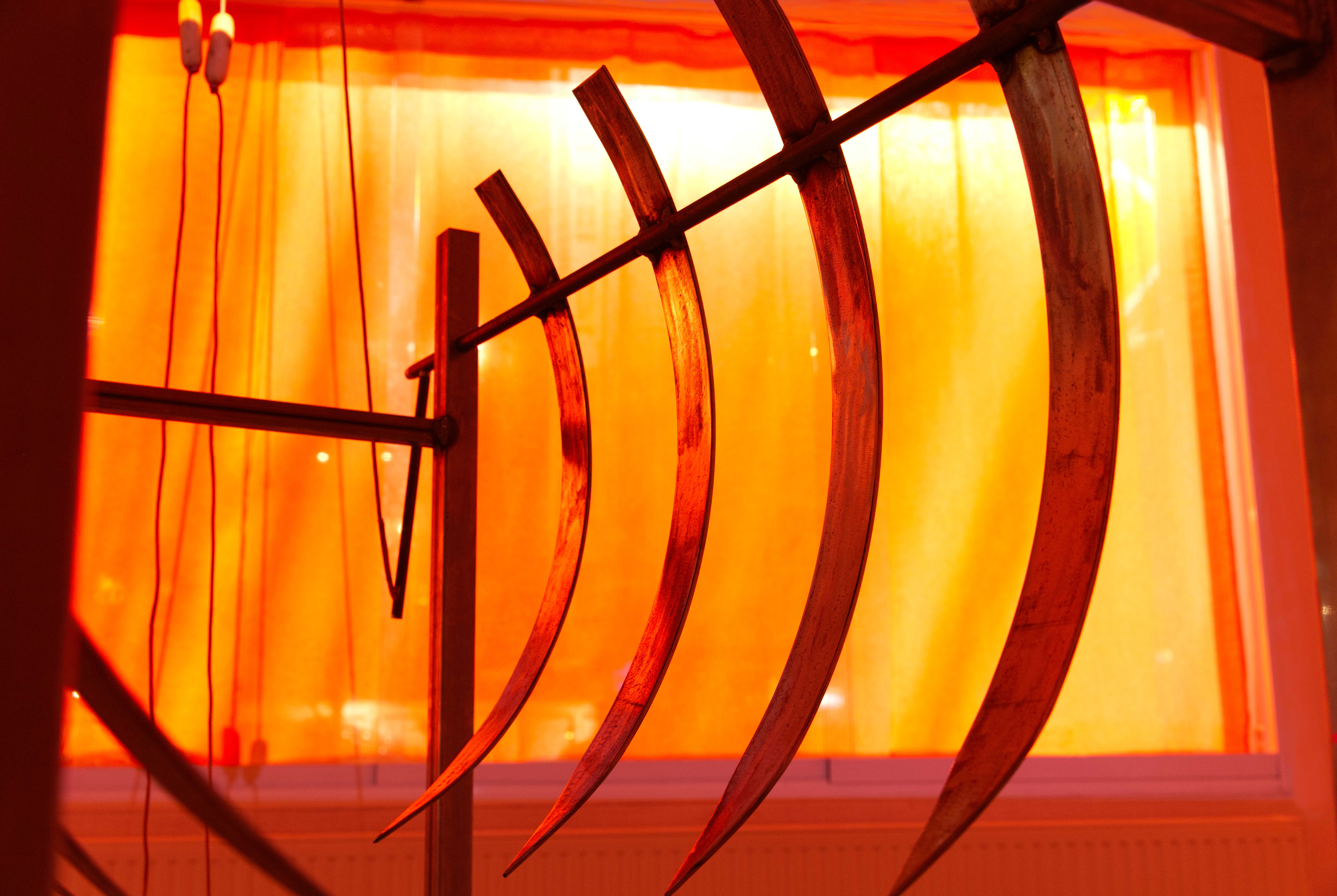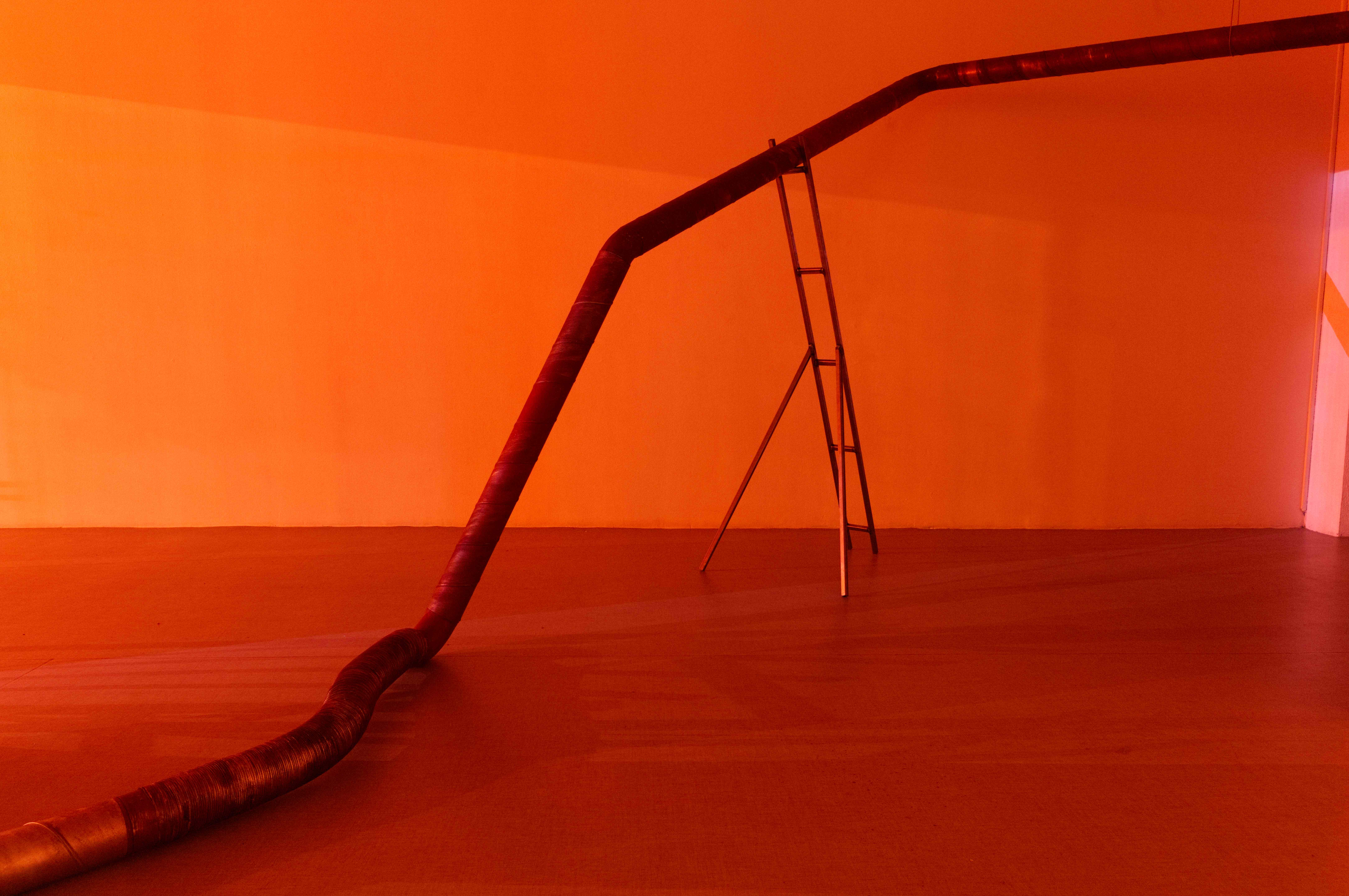 Nattetid syntes projektioner med olika flöden i galleriets fönster; en järnrik bäck, rostig vätska och rep som cirkulerar (från mitt tidigare verk Repmaskin). Genom videorna ville jag levandegöra gallerirummet utanför öppettiderna. Filmerna kopplar an till pågående rörelser i kroppen, och samspelar med flödet av passerande bilar och människor utanför. Projektionerna reflekteras även på väggarna inne i galleriet och fyller rummet med ett rött ljus.